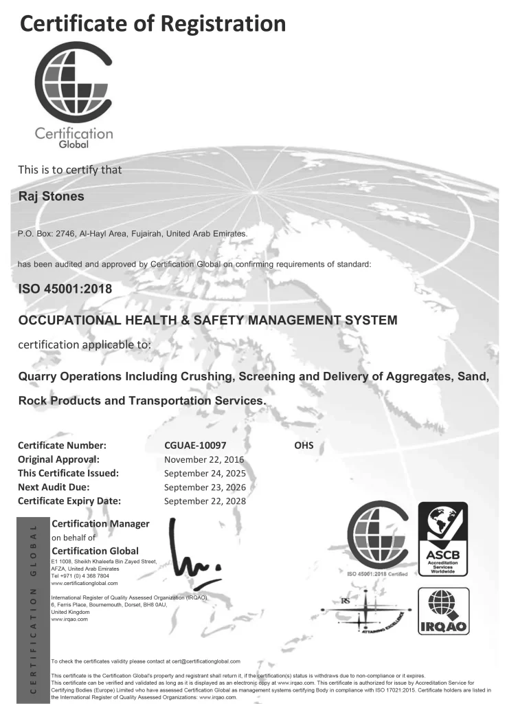 Raj group is one of the leading market players in the GCC region for more than Eighteen years producing around six million tons per annum of high quality gabbro aggregates and quarry products. Having started in 2005, the company has in very short period expanded and captured a large share of UAE and Qatar market by providing quality and reliability of supply.