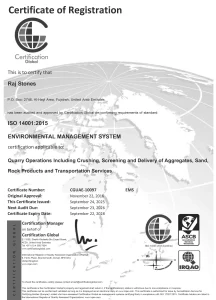 Quality is standard at our quarries. To maintain and enhance quality of our products, we have implemented an in-house quality system. A well equipped laboratory managed by expert technicians helps constantly to monitor quality. Physical analysis of aggregates is done on a day to day basis. Pre & post blasting tests on rocks is conducted to ensure consistency in specific gravity. Our seriousness to quality can be gauged by the fact that quarterly third party tests are also conducted. Quality control is carried out by highly qualified personnel is accordance with the ISO-9001: 2015, QMS, ISO-14001: 2015 EMS, ISO- 45001: 2018 OHS. ATTAIN